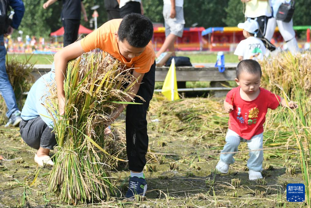 9月23日,我國迎來第6個中國農民豐收節。北京市海淀區上莊鎮在西馬坊京西稻田舉辦首屆“稻香傳韻 非遺承情”文化藝術節活動。市民在活動中品美食、賞稻田風光、參與割稻子比賽等趣味項目,樂享秋日美好時光。