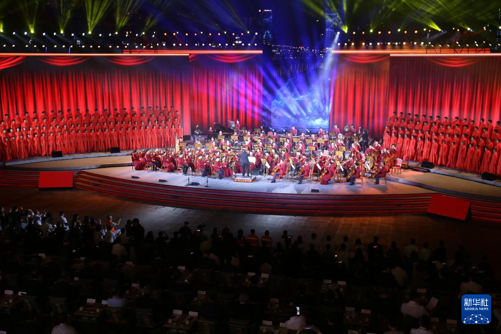 9月26日晚,“我住長江頭”全國演藝博覽會開幕式交響合唱音樂會在四川宜賓舉行。來自全國各地的文藝工作者和四川各界群眾代表約1000人觀看演出。