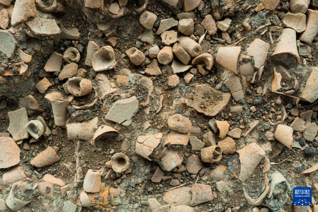 9月27日拍攝的石家河三房灣遺址出土的紅陶杯(無人機照片)。