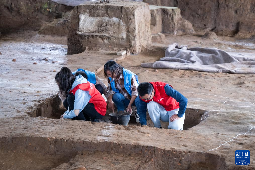 目前,湖北天門石家河遺址考古工作正有序進行,來自湖北省文物考古研究院和天門市博物館的考古工作人員在石家河遺址的譚家嶺發掘現場進行核心區房址的記錄、測量等考古工作。
