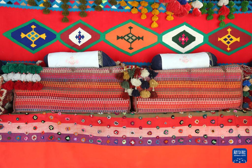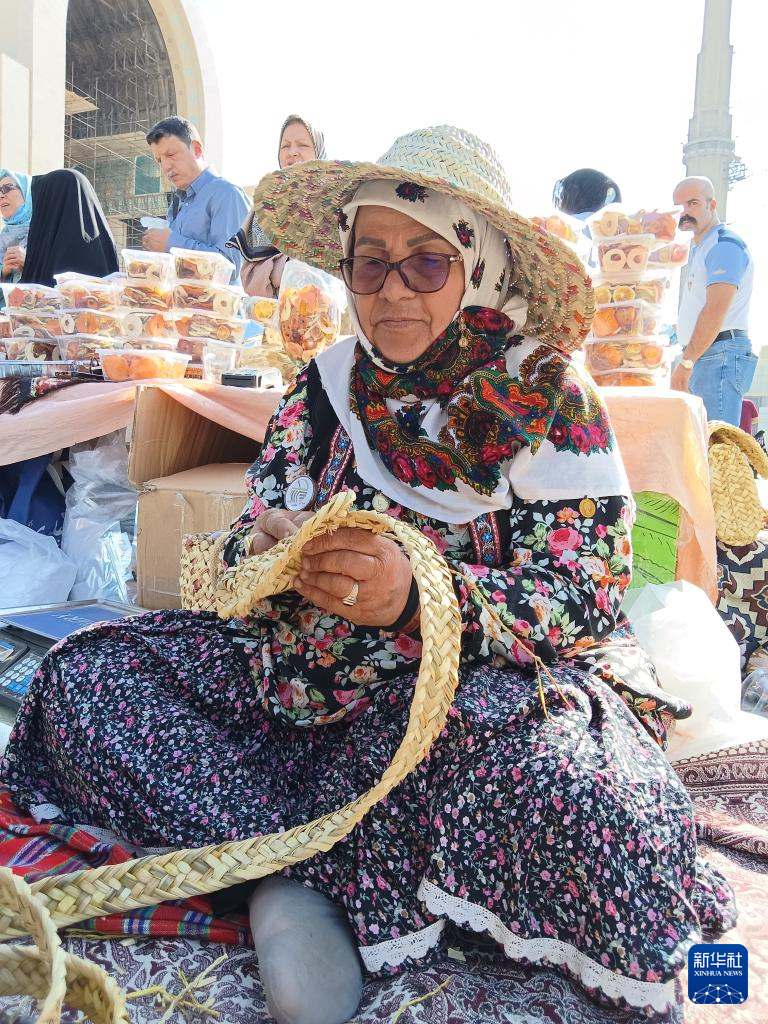 10月10日,在伊朗首都德黑蘭,一名女子展示編織技藝。