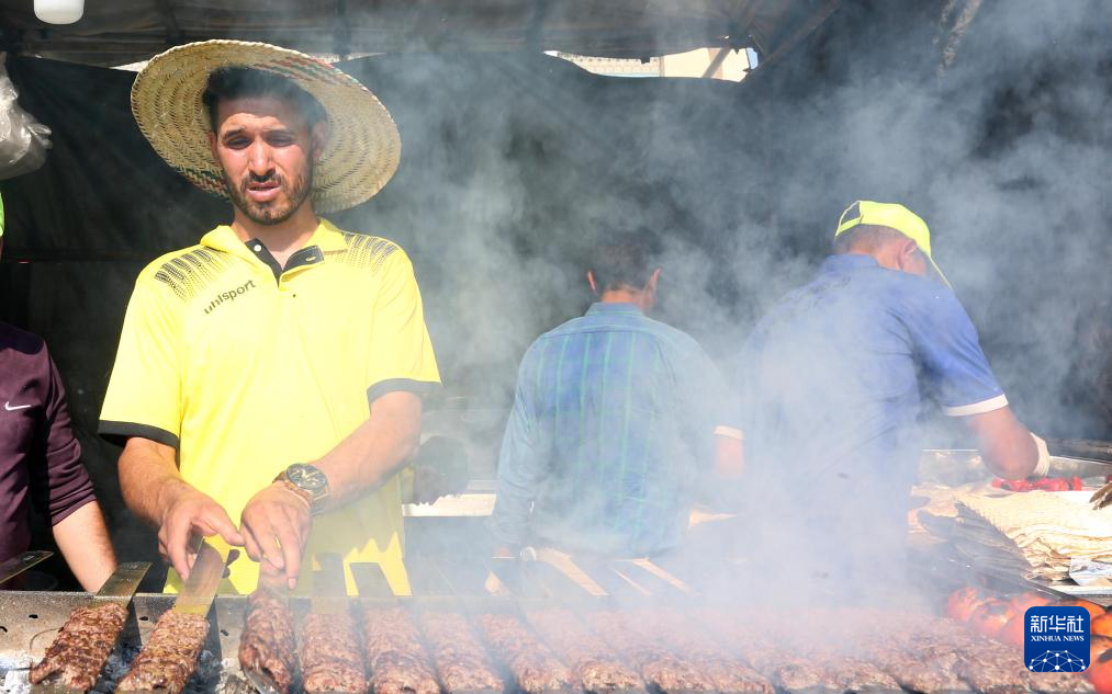 10月10日,在伊朗首都德黑蘭,一名男子制作特色美食。
