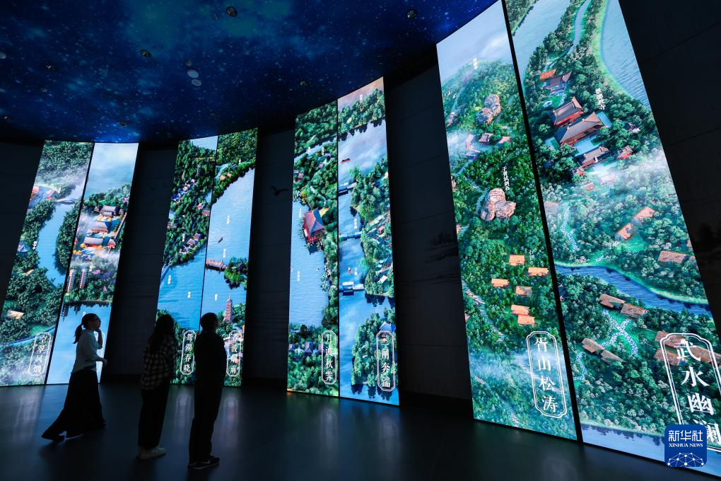 10月11日,游客在大運河數字詩路e站的嘉禾八景展廳內參觀。