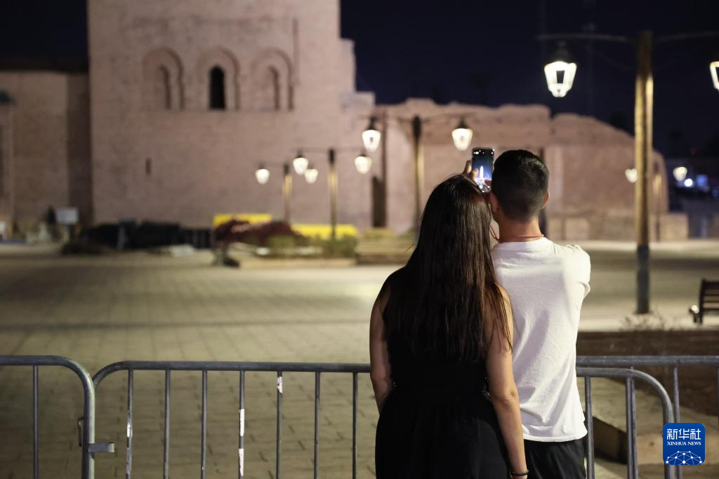 10月11日,游客在摩洛哥馬拉喀什游覽拍照。