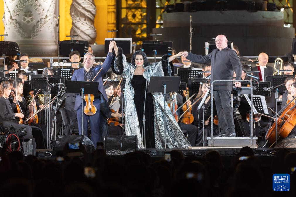 10月14日,在第22屆中國上海國際藝術節首場開幕演出上,指揮家克里斯托夫·艾森巴赫、女高音歌唱家安吉拉·喬治烏、小提琴家馬克西姆·文格洛夫(前排從右至左)在表演后向觀眾致意。