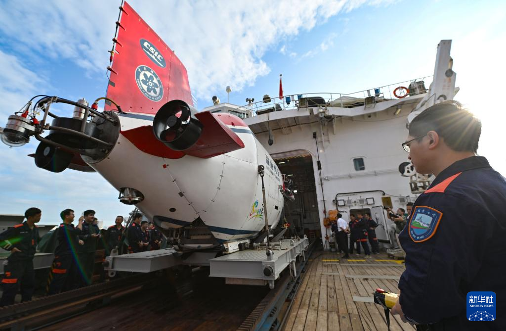 這是完成第二階段考古調查的“深海勇士”號載人潛水器(10月10日攝)。