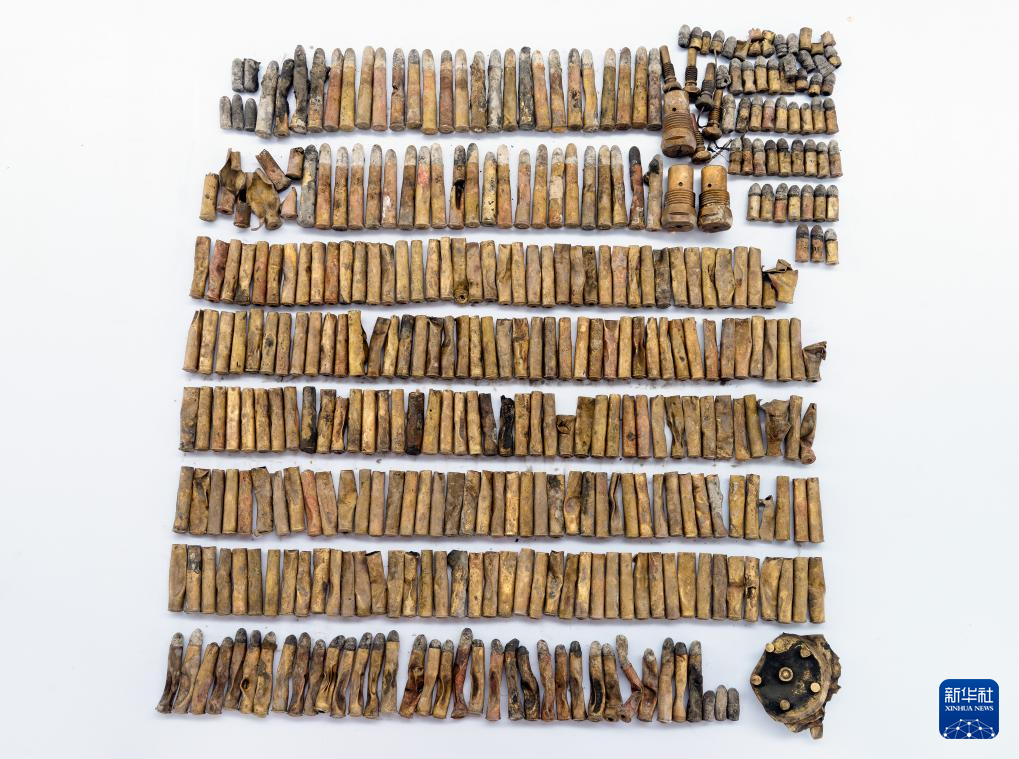 圖為威海甲午沉艦遺址出水的部分小口徑子彈合照。