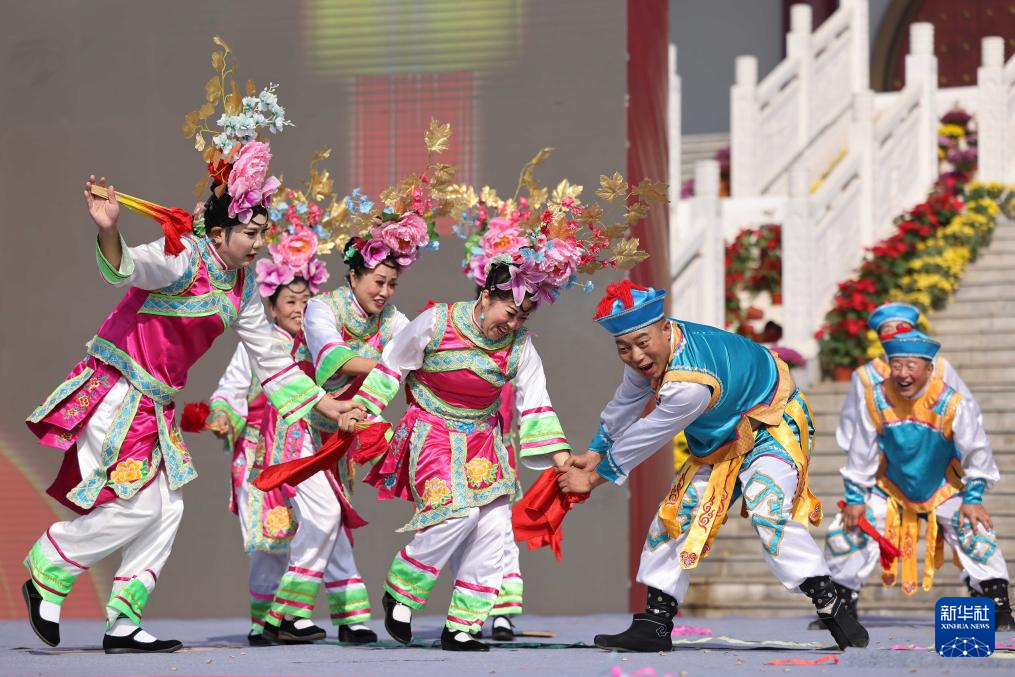10月25日,演員在“中國民間文化藝術之鄉”示范交流展示活動現場表演節目(無人機照片)。