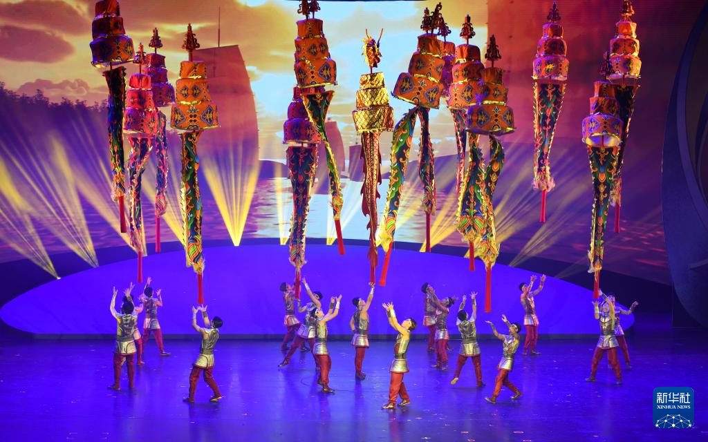 10月25日,中國雜技演員在表演《龍躍神州——中幡》。