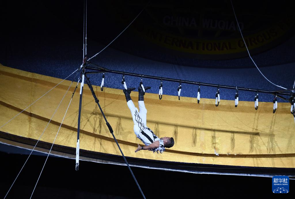 10月25日,巴西雜技演員在表演《秋千倒立》。