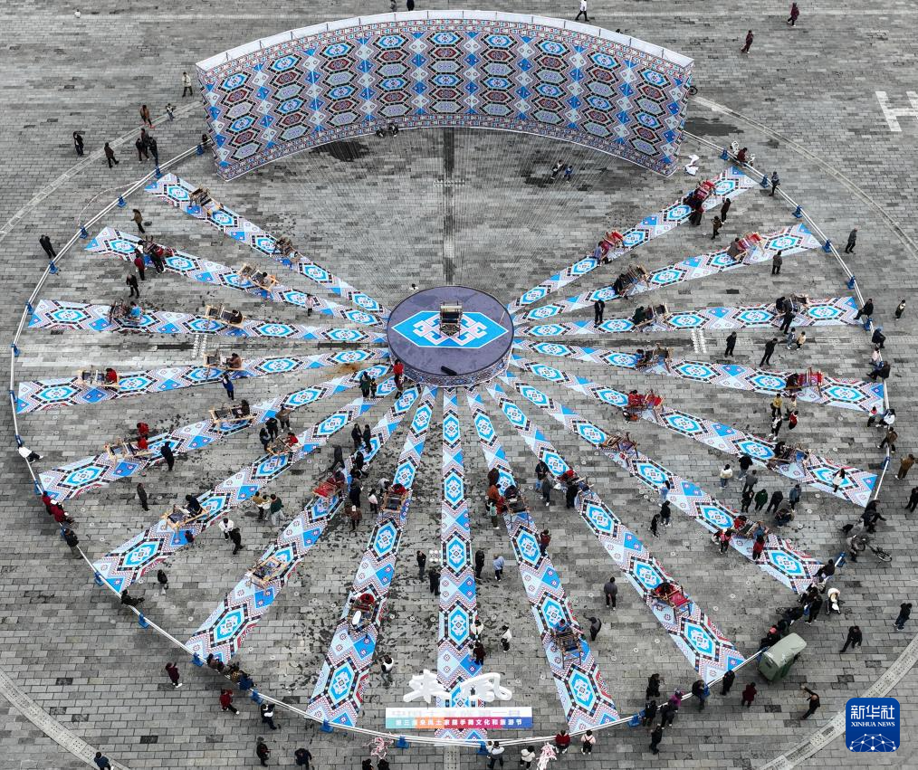 當日,數十名織錦女工在湖北省來鳳縣龍鳳文化中心廣場現場進行“西蘭卡普”制作,普及非遺文化。