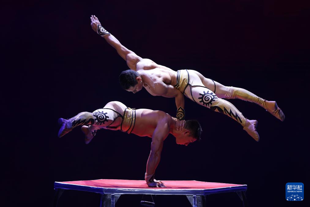 10月28日,演員在河北省滄州市吳橋縣吳橋雜技大世界景區江湖大劇院表演節目。