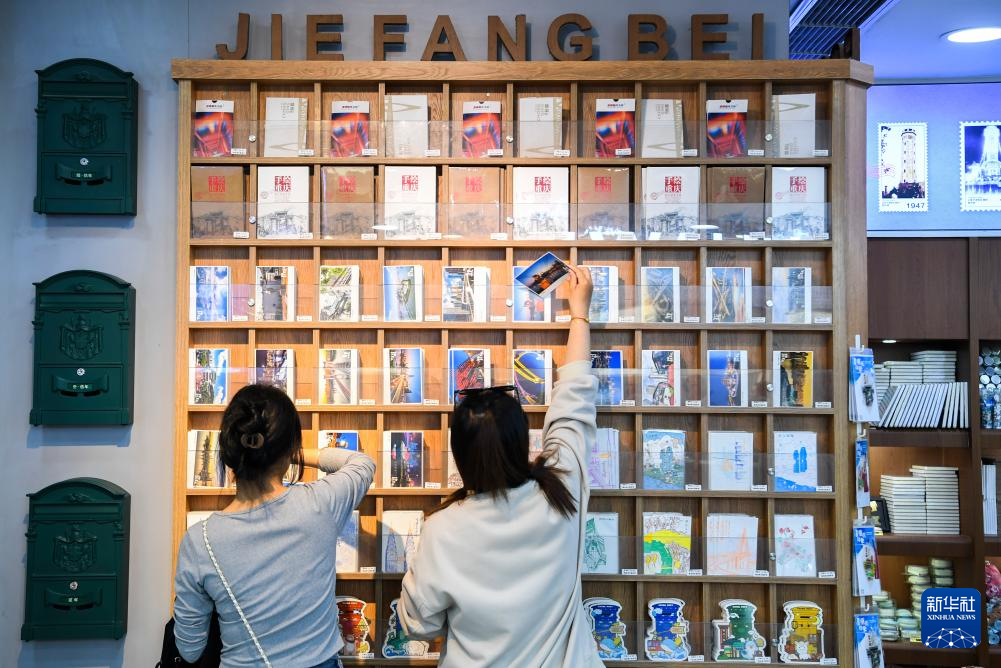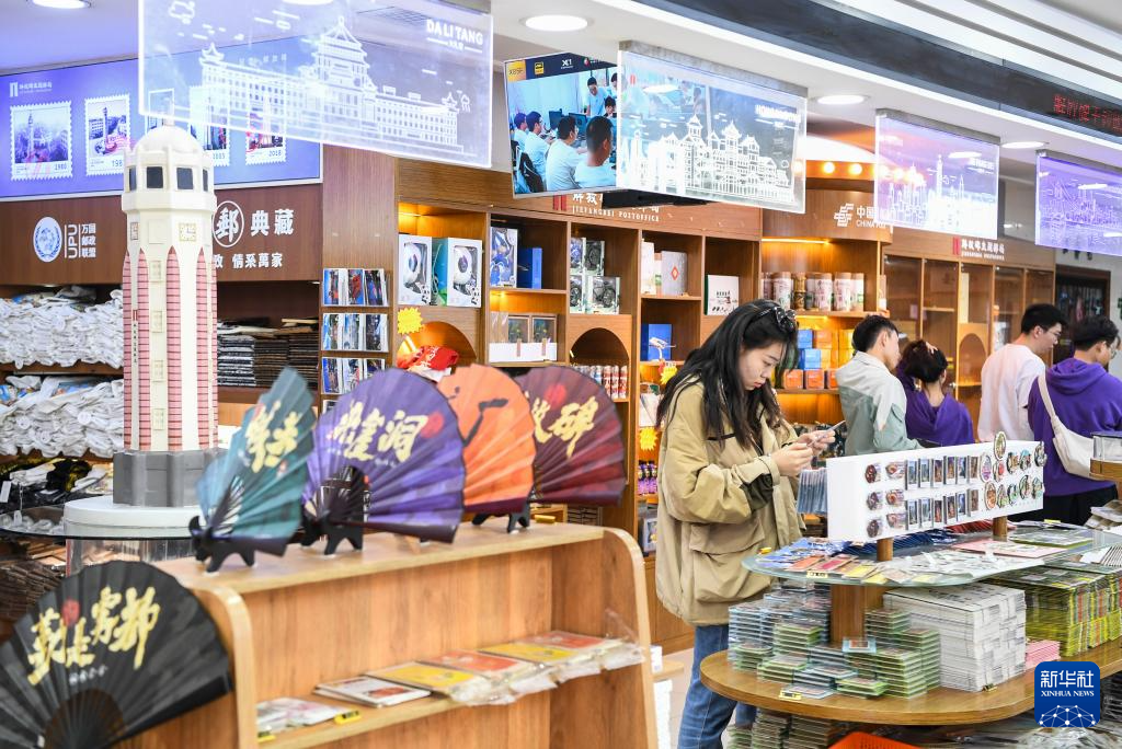 10月29日,游客在位于督郵街的解放碑主題郵局參觀、選購。