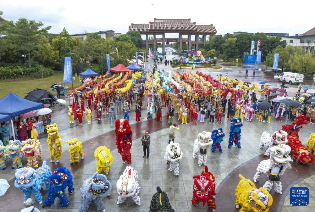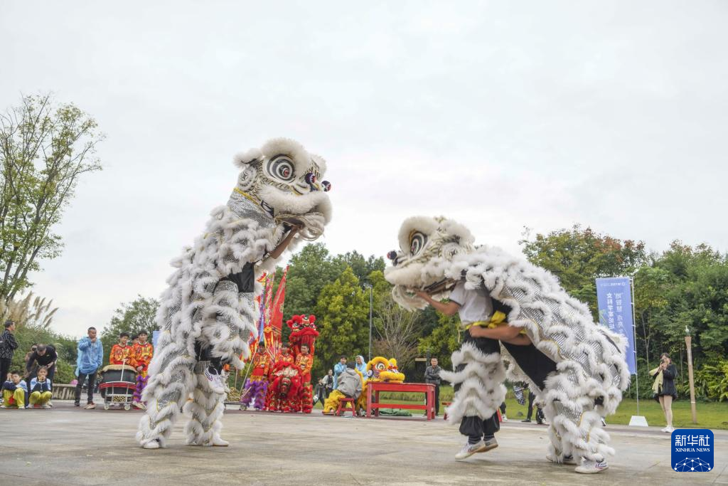 11月11日,在浙江省溫州市三垟濕地公園北廣場,舞獅隊選手在比賽中。