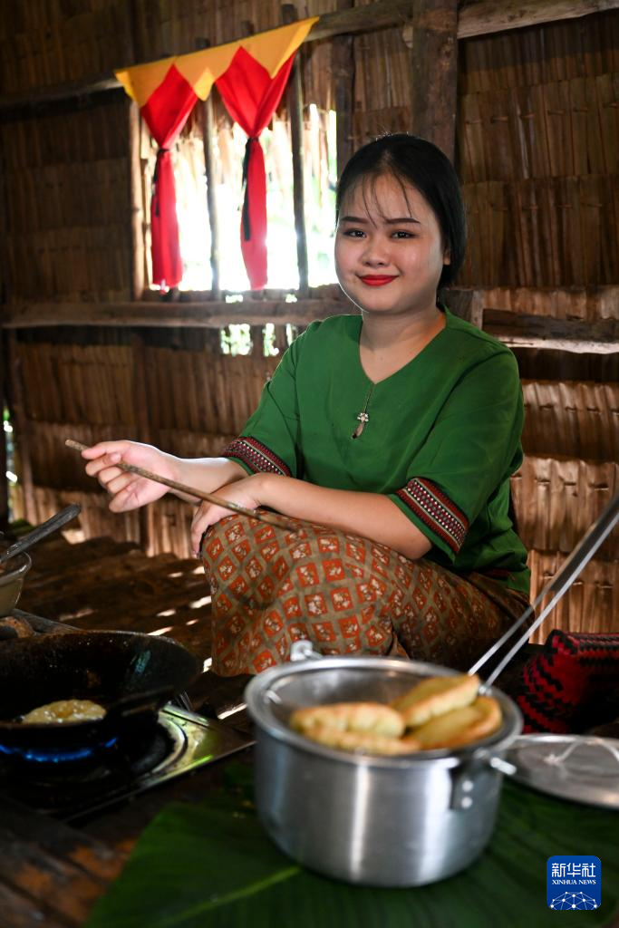 11月14日,在馬來西亞沙巴州的馬里馬里文化村,一名女子制作傳統民族食物。