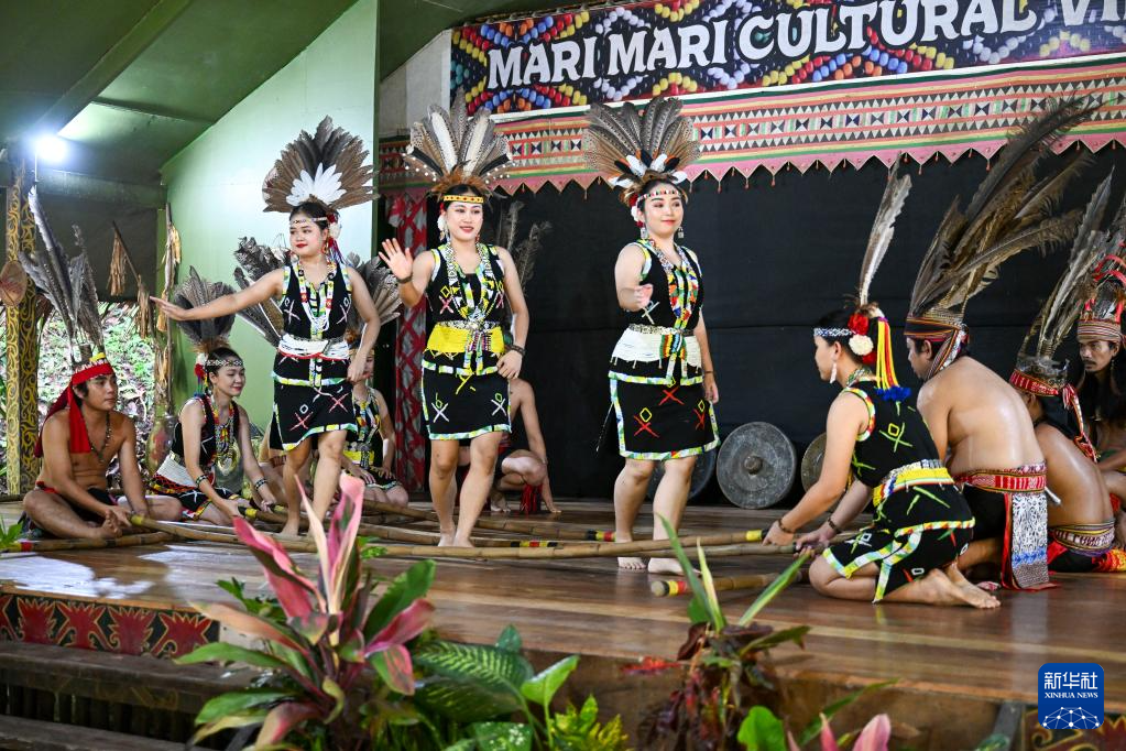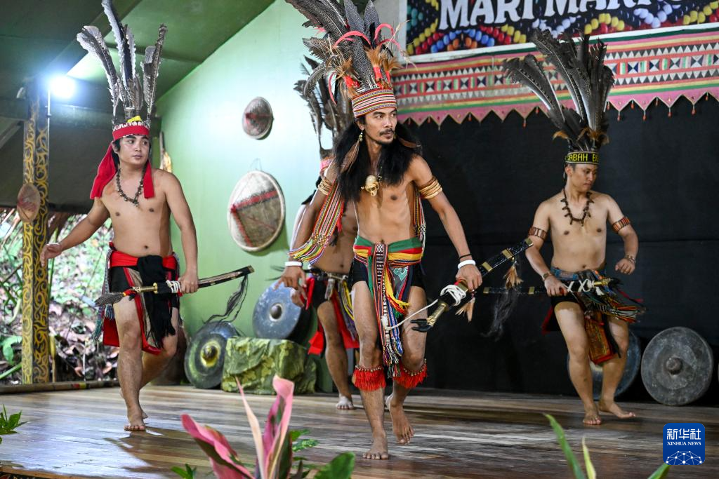 11月14日,在馬來西亞沙巴州的馬里馬里文化村,原住民身著特色服飾進行舞蹈表演。