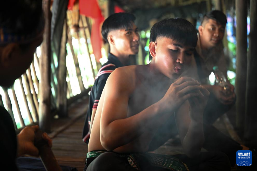 11月14日,在馬來西亞沙巴州的馬里馬里文化村,一名男子展示傳統生火方式。