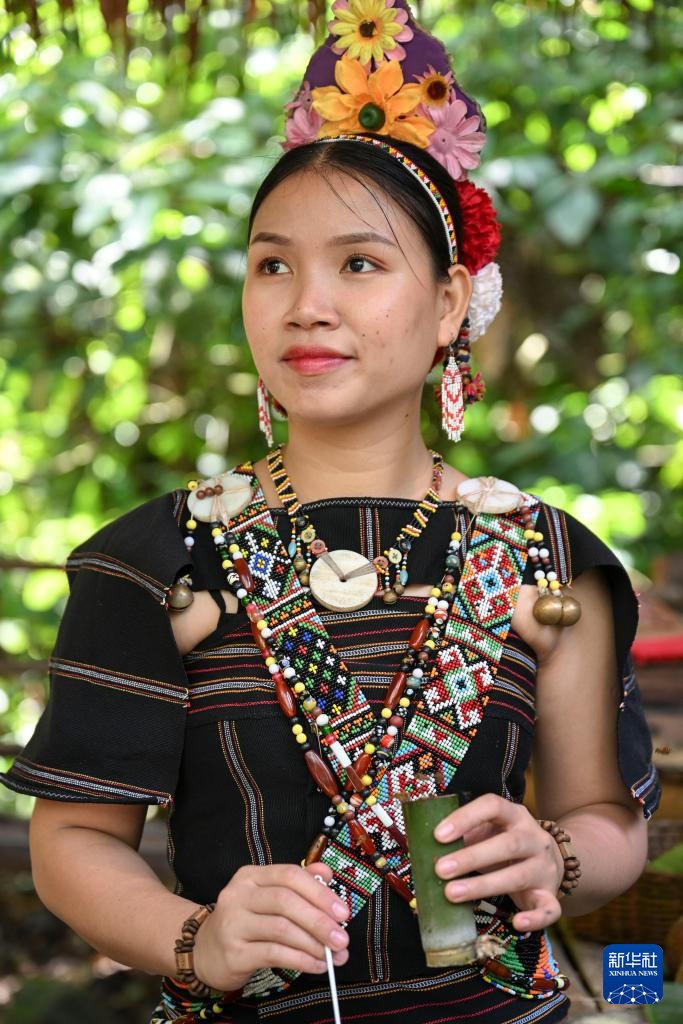 這是11月14日在馬來西亞沙巴州的馬里馬里文化村拍攝的一名身著傳統民族服飾的女子。