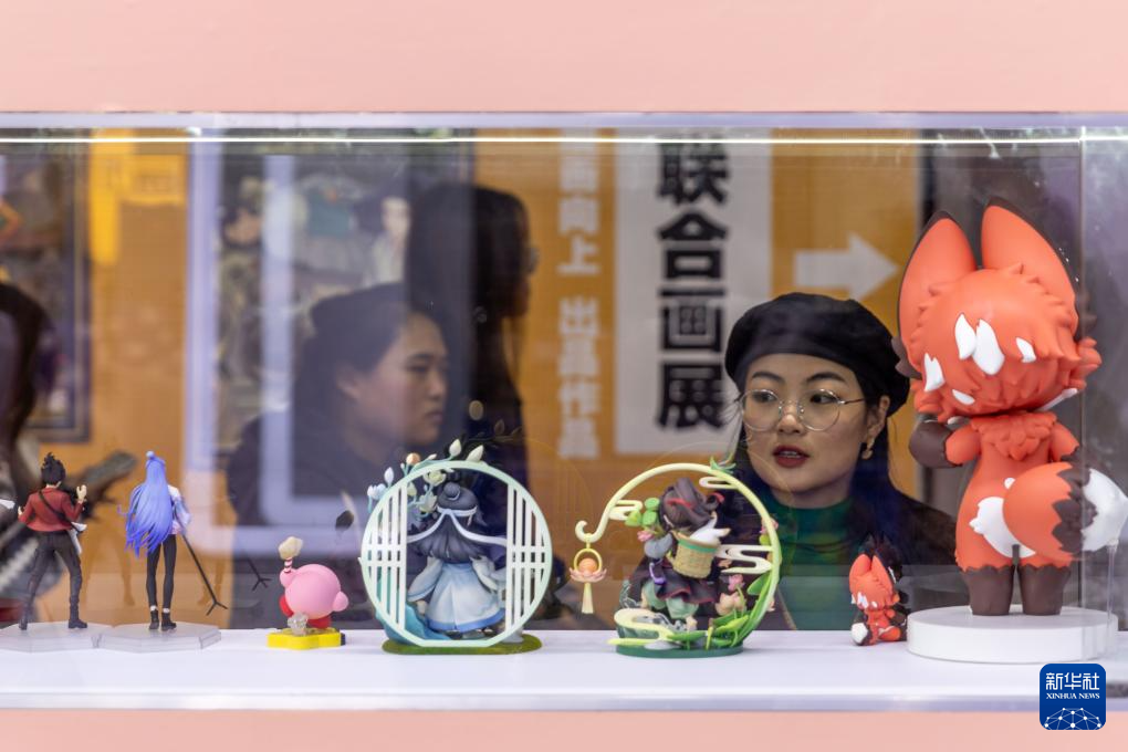 11月16日,人們在上海市閔行區展位觀看當地文創公司的手辦。