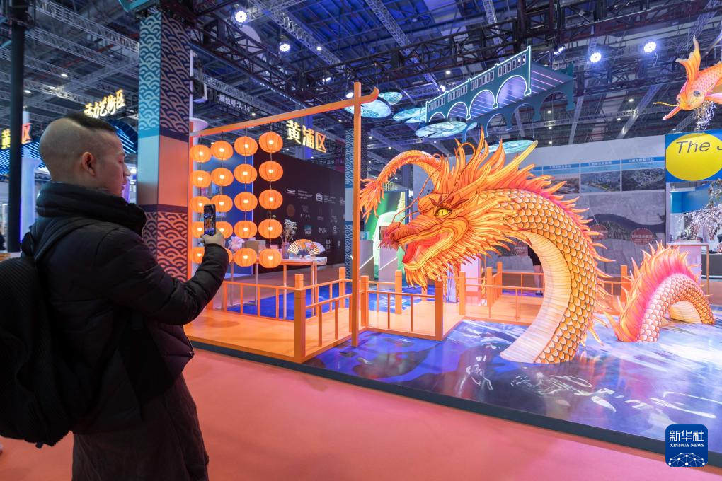11月16日,參觀者在豫園展位拍攝以豫園燈會為主題元素的空間場景。