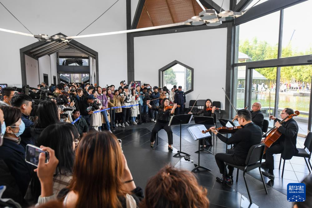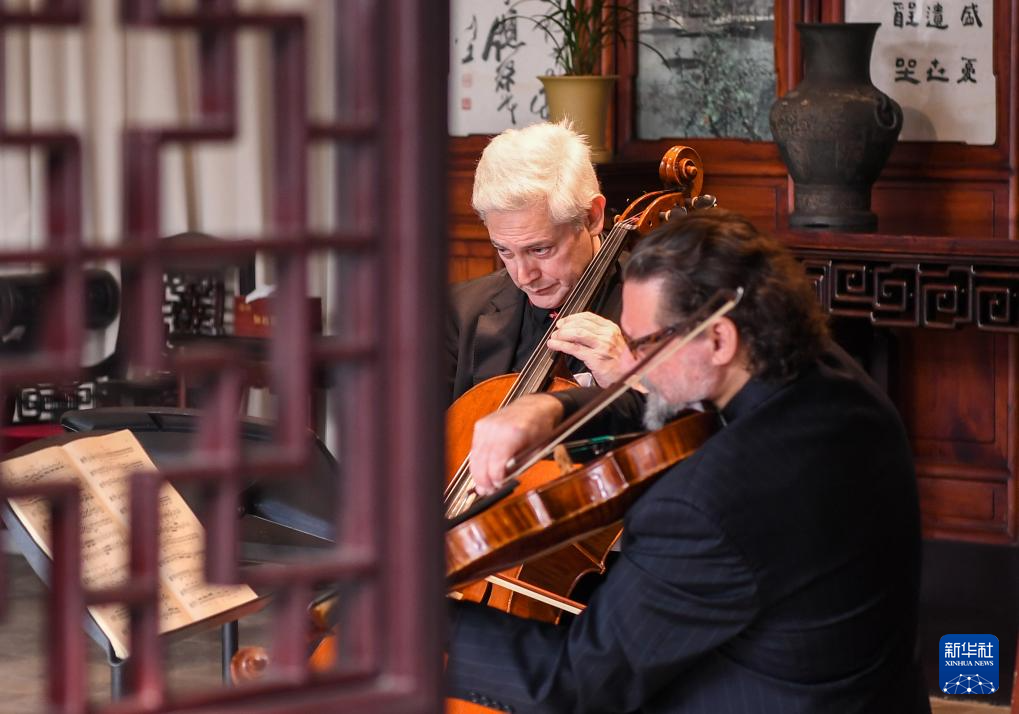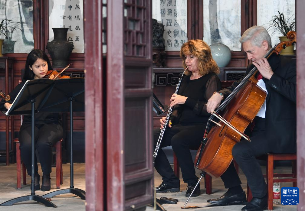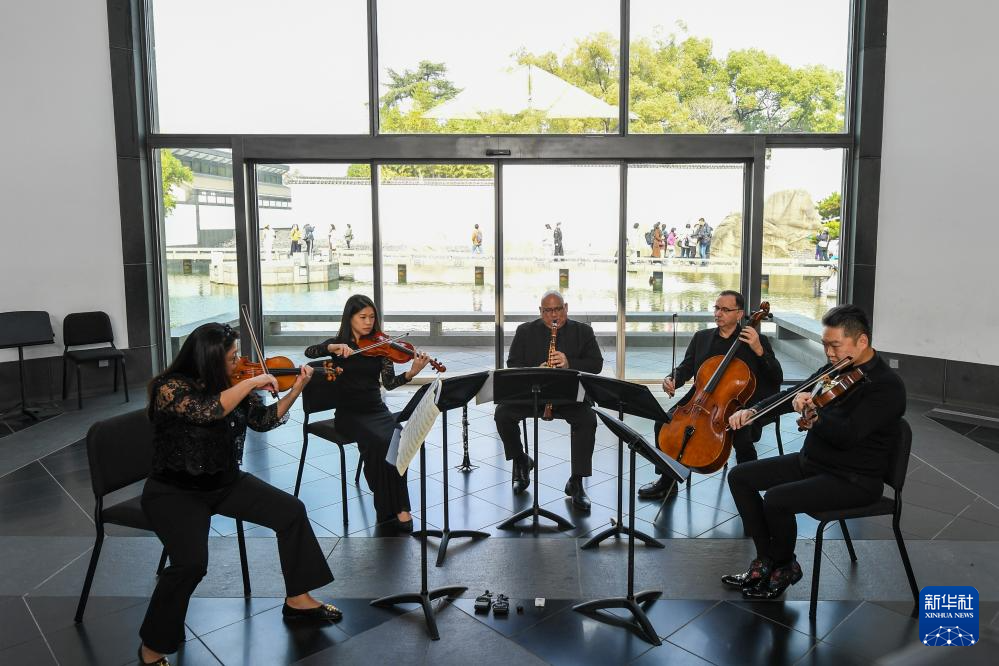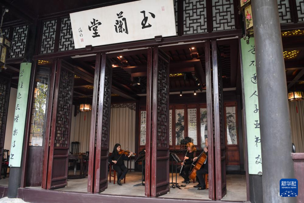 11月16日,來自費城交響樂團的演奏家們在蘇州拙政園玉蘭堂演奏。