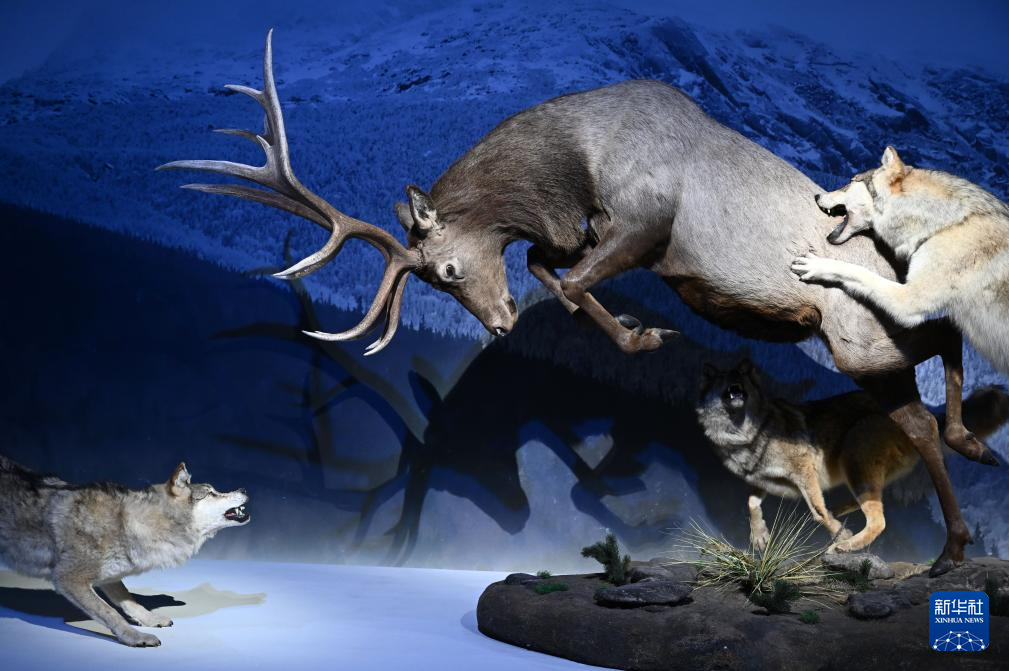 11月16日在展覽上拍攝的天山馬鹿標本。
