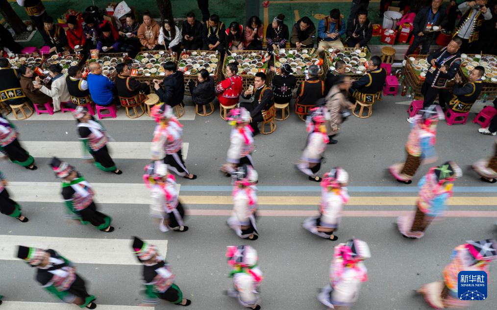 當日,云南省紅河哈尼族彝族自治州綠春縣舉行哈尼族長街宴活動。當地哈尼族群眾身著節日盛裝,載歌載舞,與游客共慶2023云南·綠春哈尼十月年長街古宴文化旅游節。長街古宴是哈尼族“十月年”中的一個習俗,當地群眾通過長街古宴慶祝豐收、祈福納祥。