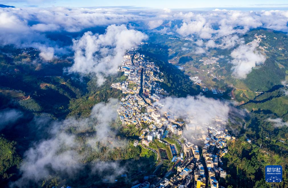 11月19日拍攝的綠春縣城主街上的哈尼長街古宴(無人機照片)。