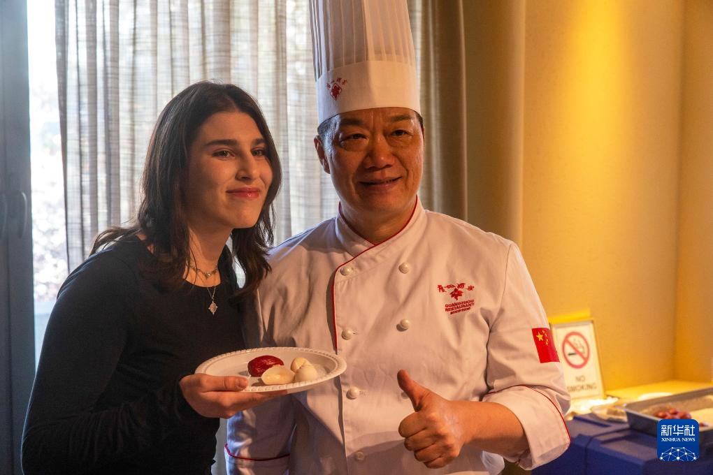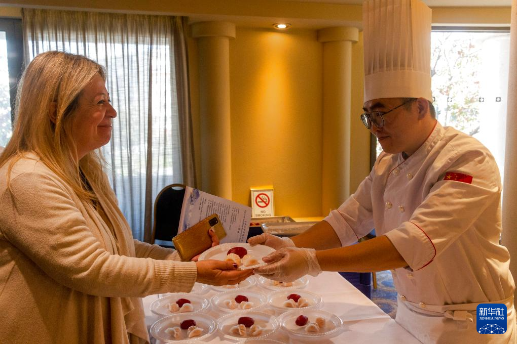 11月20日,在希臘雅典,嘉賓在廣東“文化海外行”活動現場品鑒美食。