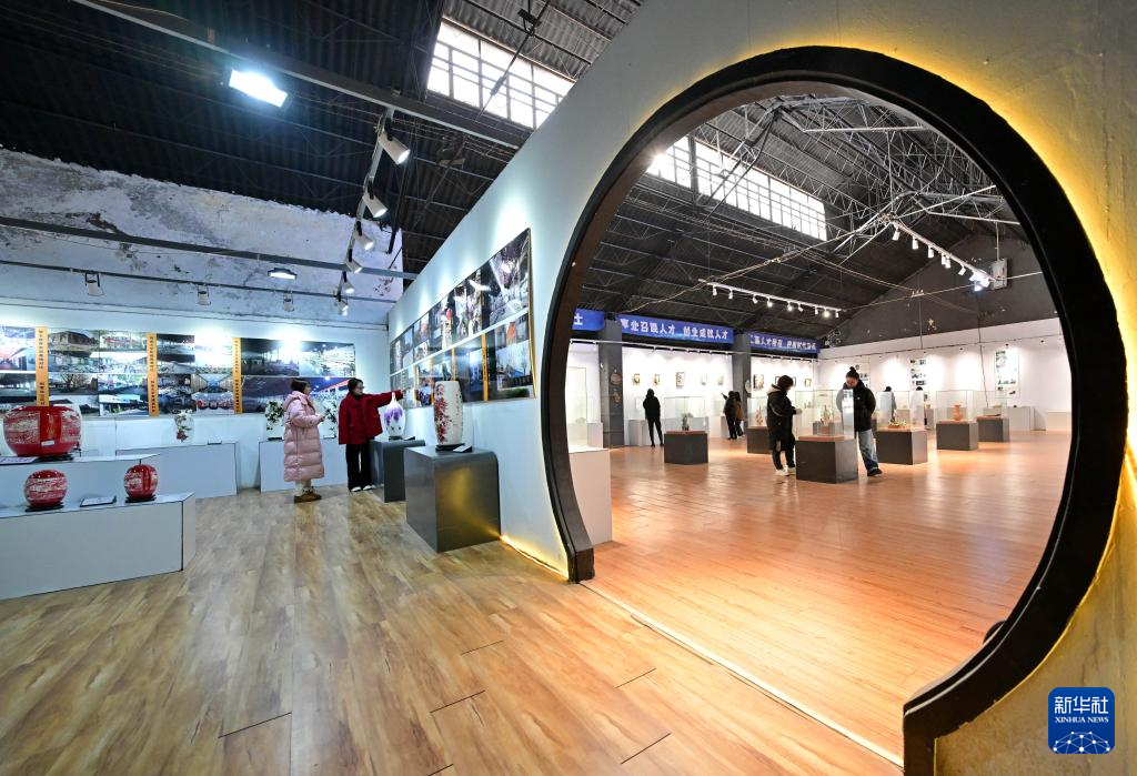 11月21日,游客在唐山市開平區陶瓷文創產業園內的唐山骨質瓷創意博物館參觀。