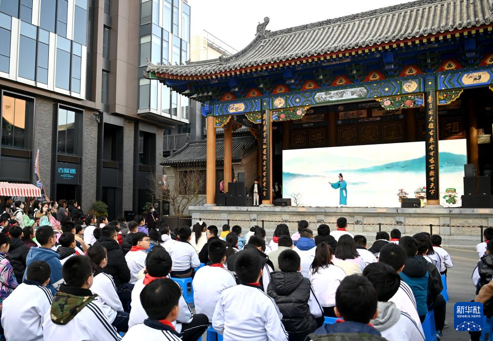 當日,西安市新城區“戲曲非遺傳薪火 國粹文化立自信”新時代文明實踐進校園活動在西安易俗社文化街區舉行。西安市新城區西一路小學的百余位師生聆聽秦腔經典曲目,感受傳統戲曲文化魅力。