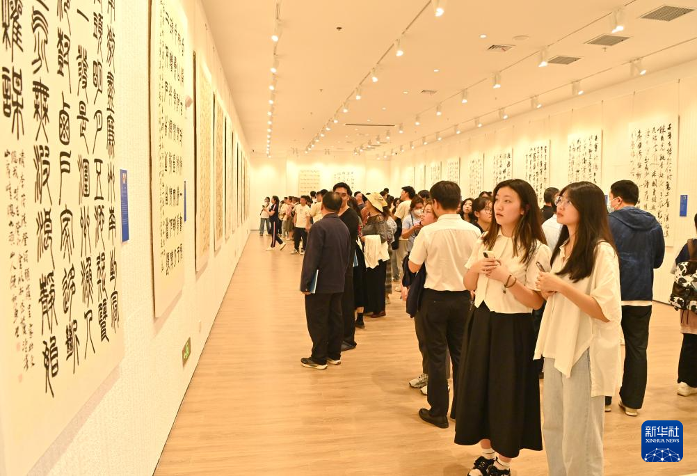 11月27日,觀眾在參觀中國書法蘭亭獎獲獎名家作品(北海)邀請展。
