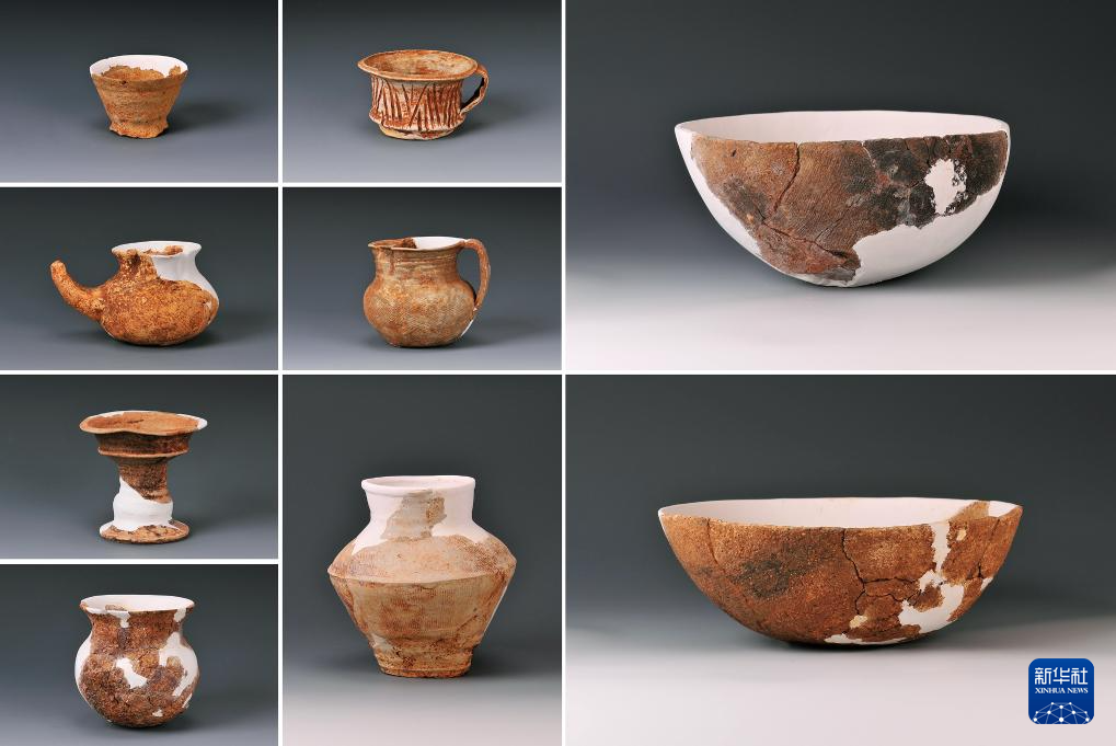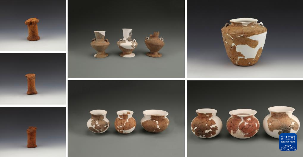 福建平潭島龜山遺址出土的部分陶器(拼板照片)。