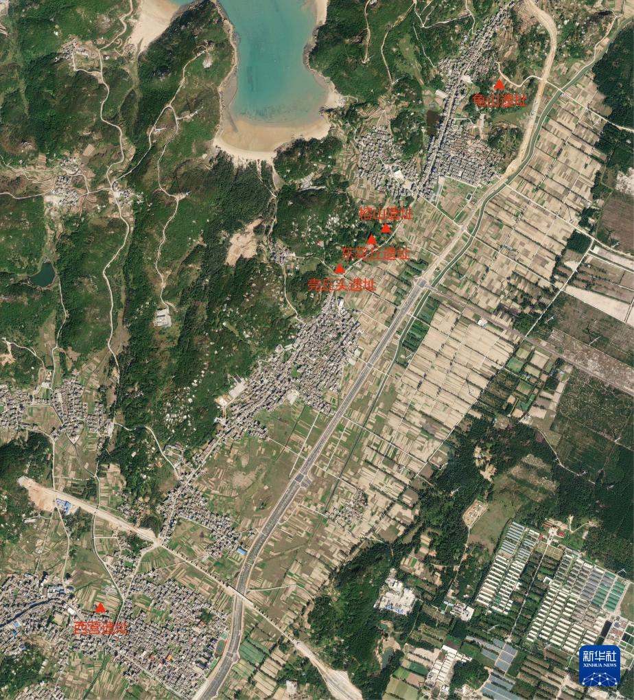 福建平潭島殼丘頭、西營等遺址位置分布圖。