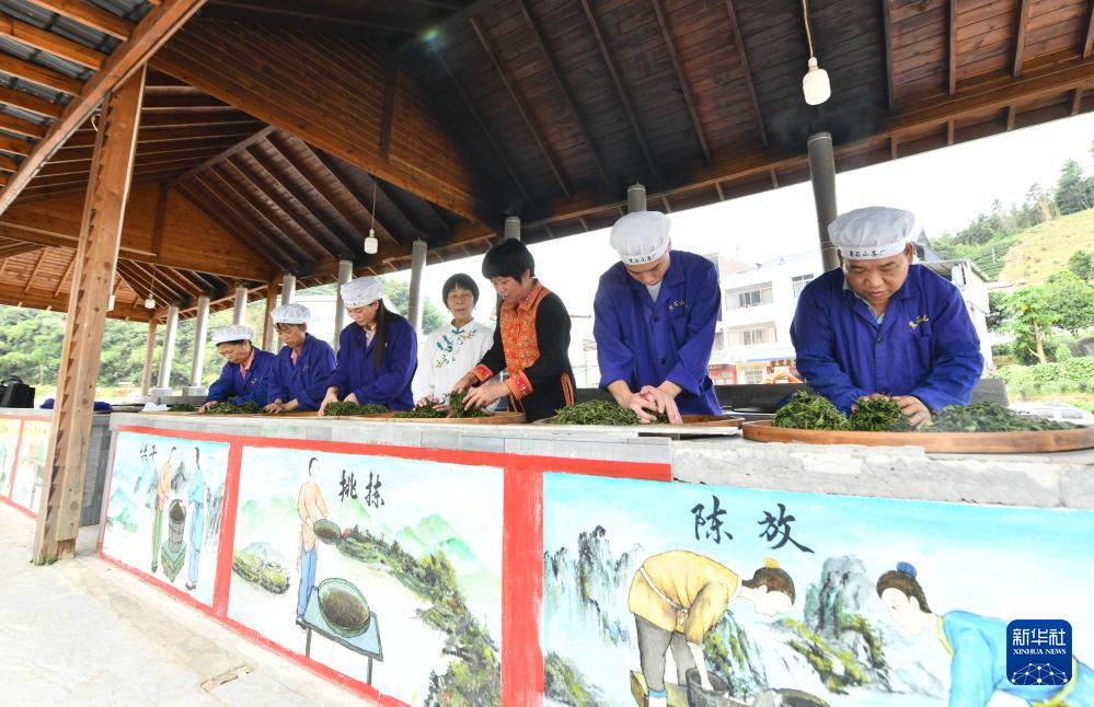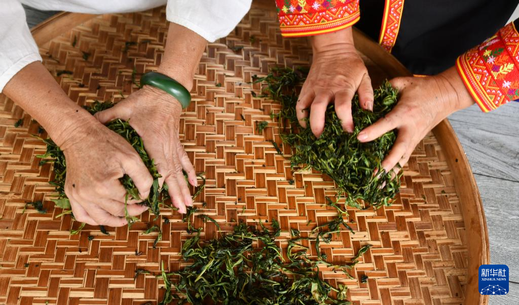 在梧州市蒼梧縣六堡鎮黑石山茶廠,工人在加工茶葉(9月6日攝)。