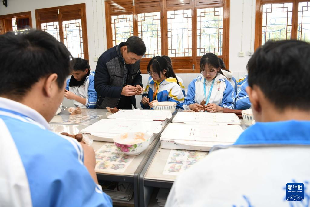 12月8日,學生在貴州省黔東南苗族侗族自治州黃平縣舊州中學社團活動室制作泥哨。