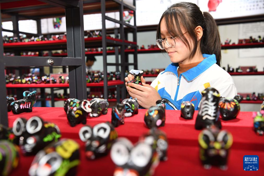12月8日,學生在貴州省黔東南苗族侗族自治州黃平縣舊州中學社團活動室擺放制作好的泥哨。
