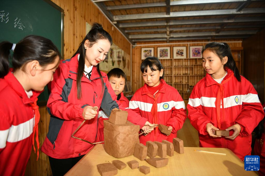 12月8日,在貴州省黔東南苗族侗族自治州黃平縣新州鎮第三小學泥哨體驗館,泥哨藝人在輔導學生制作泥哨。