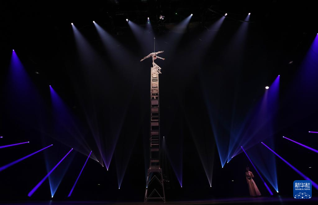 12月8日,演員在法國巴黎舉行的中國雜技“奇妙之夜”演出上表演《高椅》。