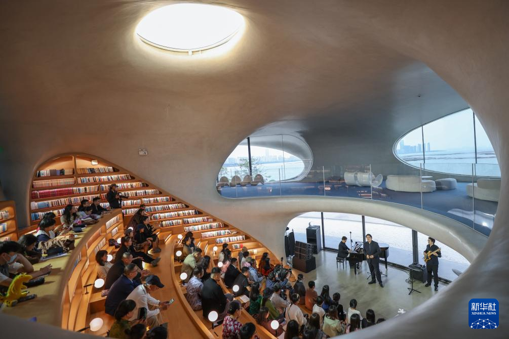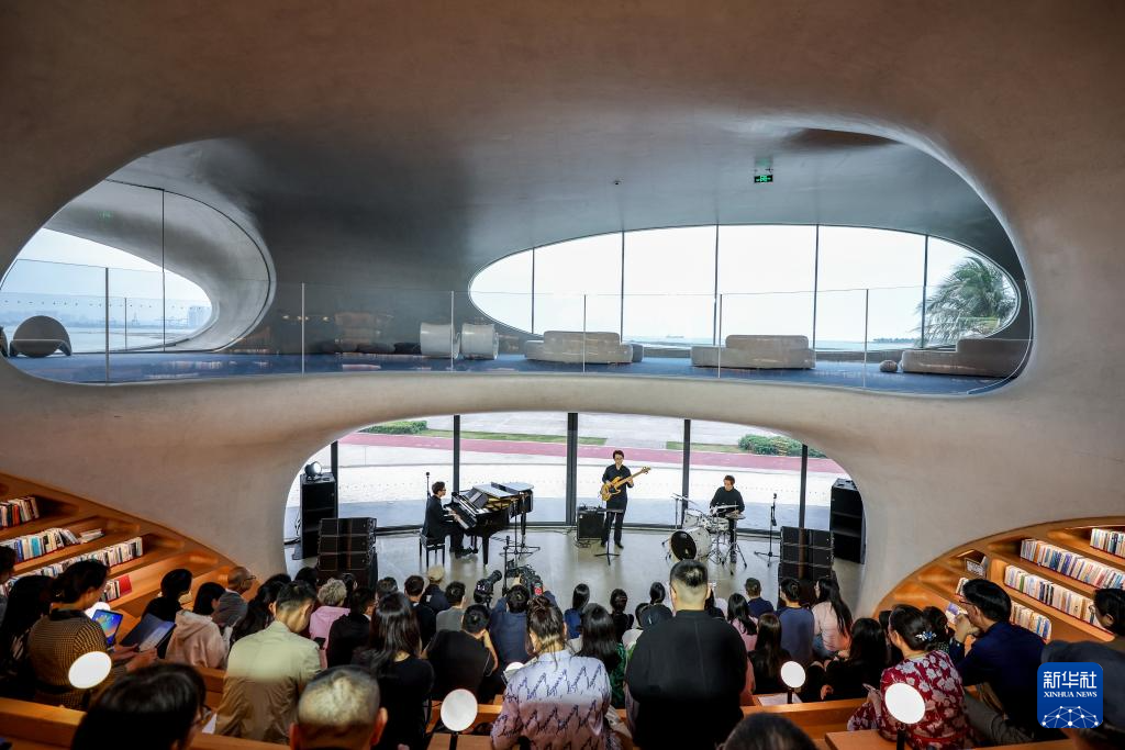 12月16日,觀眾在??谠贫磮D書館欣賞“海之爵色”音樂會。