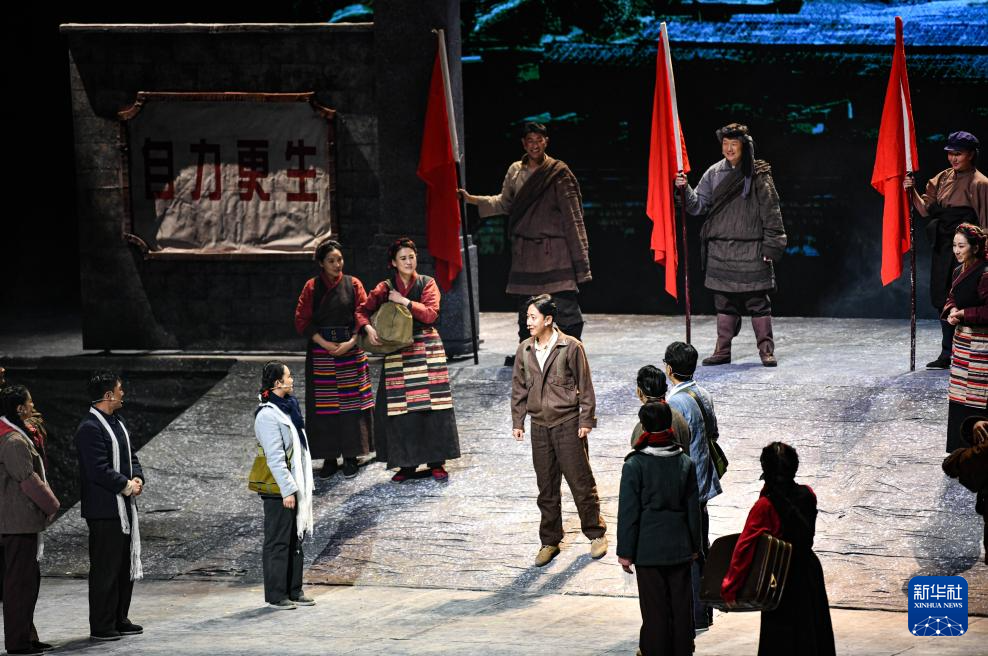 當日,話劇《老西藏》在西藏大劇院首演。該劇是西藏自治區文化廳打造的重點原創劇目,聚焦不同時期文化、水利、交通、教育、衛生等各條戰線上的西藏建設者,講述他們奉獻青春年華的熱血故事。