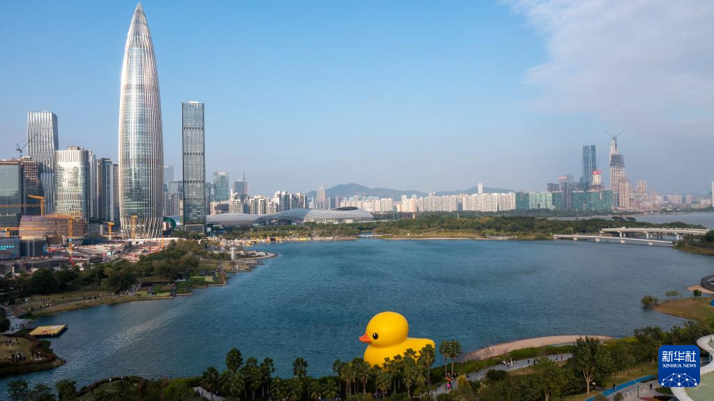 當日,2023深圳灣公共藝術季在深圳人才公園開幕,包括“大黃鴨”在內的12件出自國內外藝術家之手的雕塑和裝置作品在該公園向公眾展出。