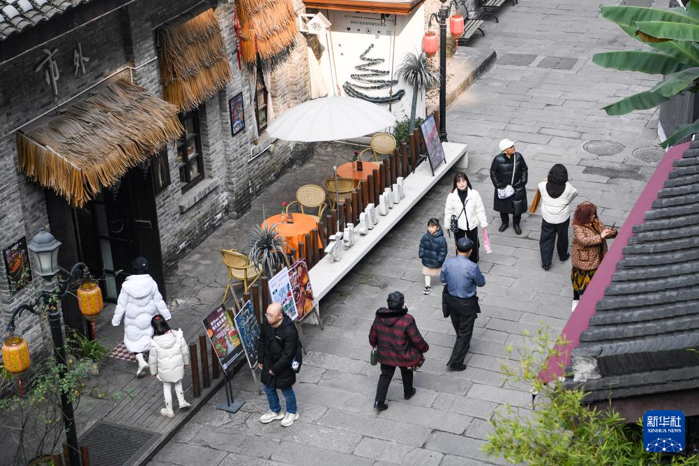 12月24日,市民和游客在重慶龍門浩老街休閑。