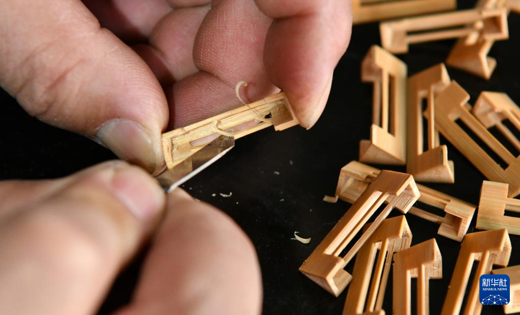 12月24日,三弦制作藝人在河北省肅寧縣一家民族樂器生產企業車間內制作三弦琴碼。
