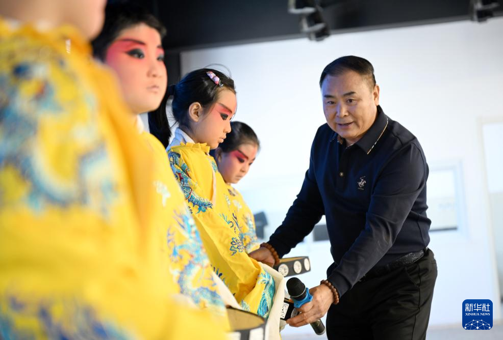 12月27日,在保定市河北小學,國家級非遺項目保定老調省級代表性傳承人杜振忠指導學生表演。