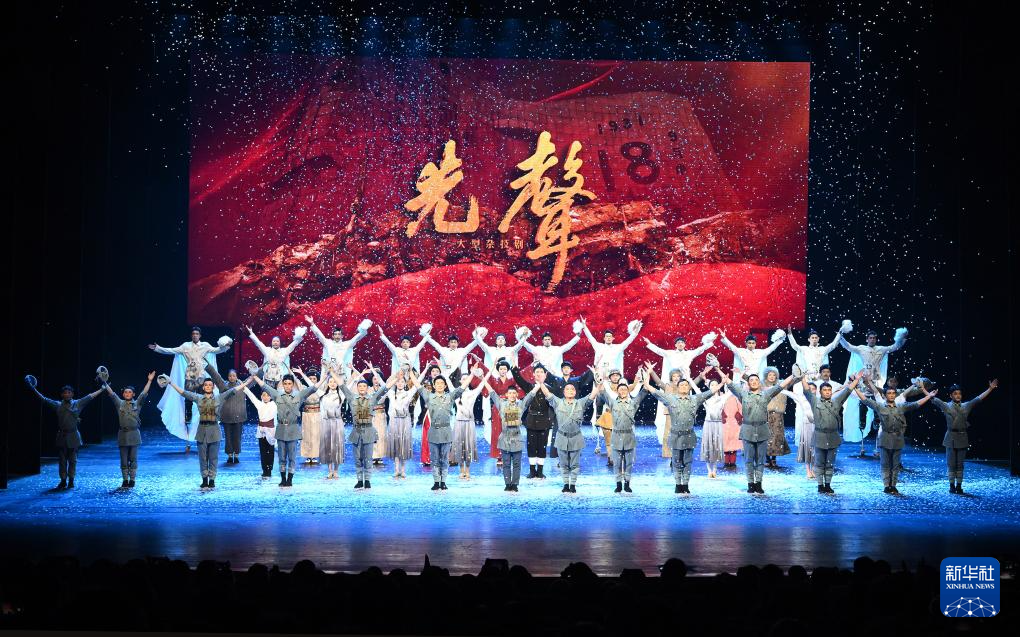 當日,由沈陽雜技演藝集團創作演出的雜技劇《先聲》在北京上演。作品通過雜技與戲劇表演的編排與整合,運用多媒體技術,將舞臺藝術和電影表現手法融為一體,講述“九一八”事變中沈陽各界抗擊日寇的故事。