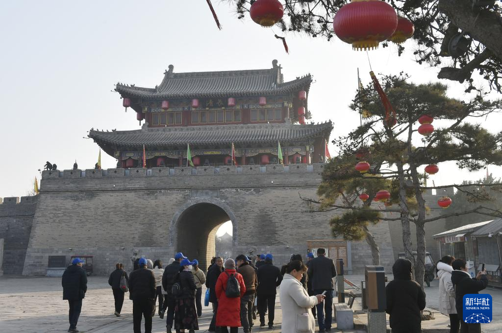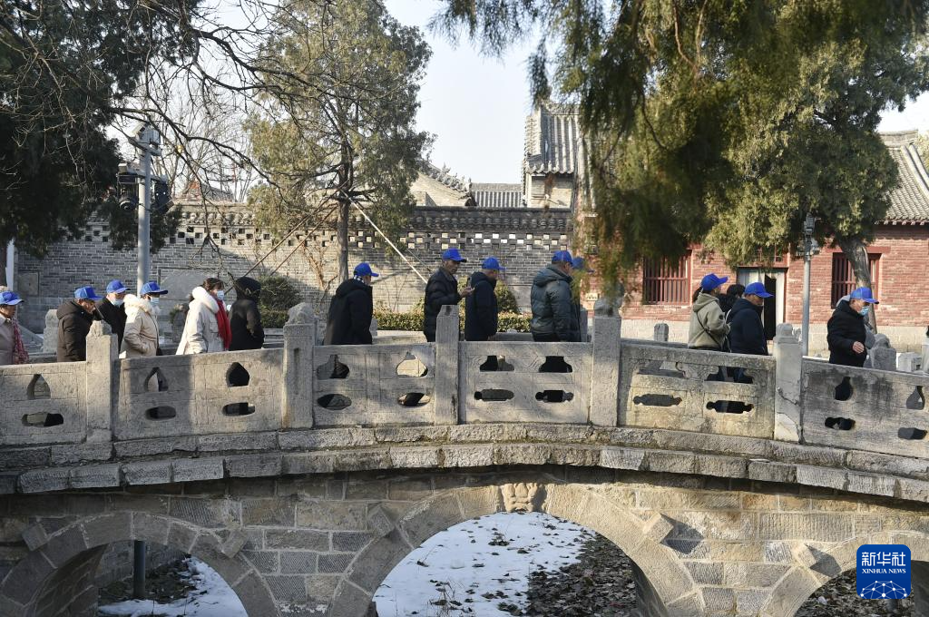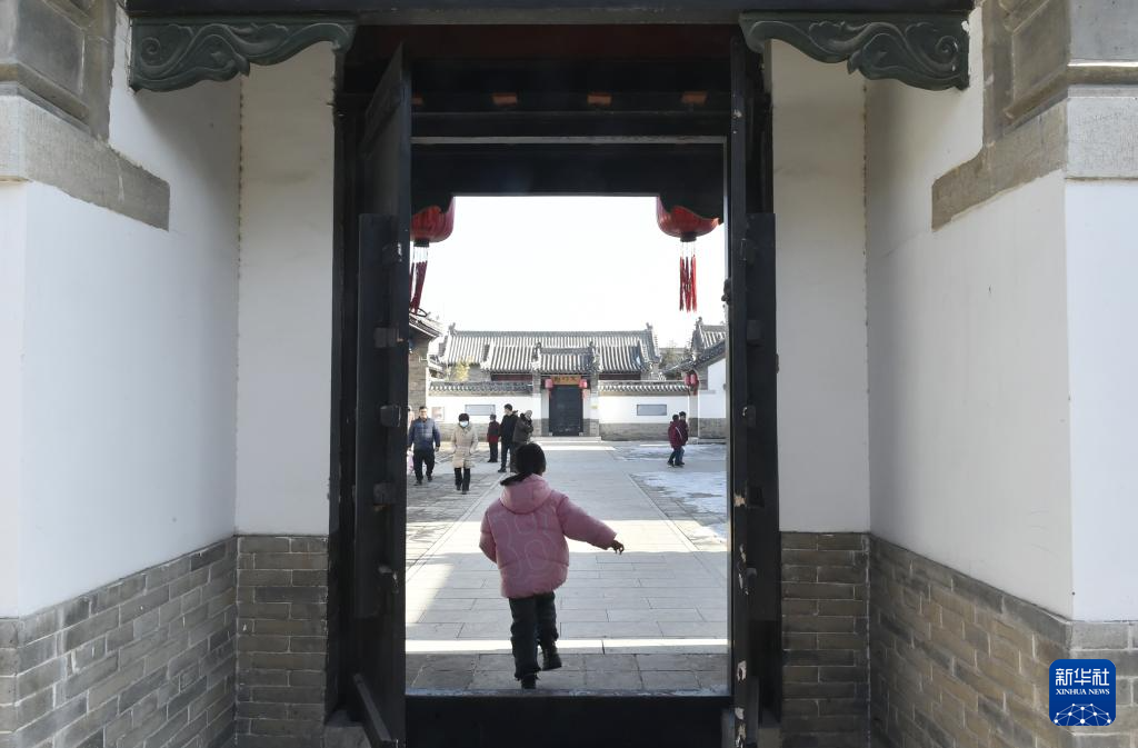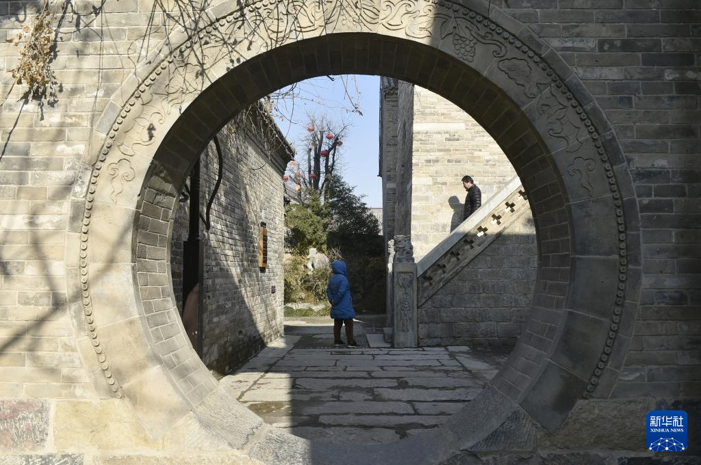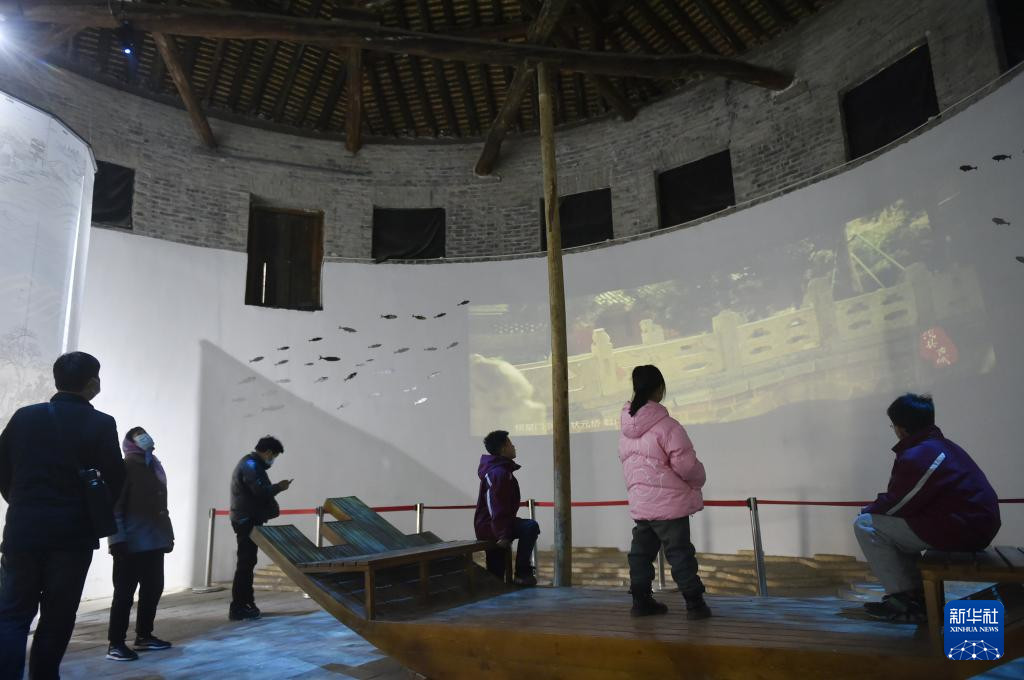 1月6日,游客在??h古城的土圓糧倉內游覽。