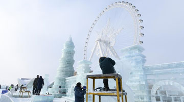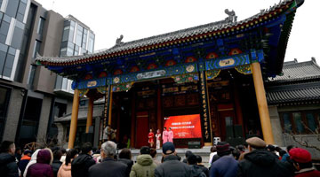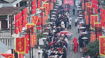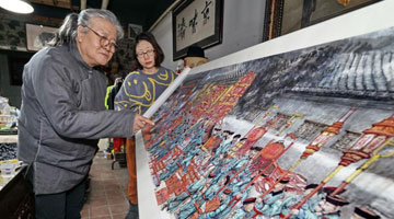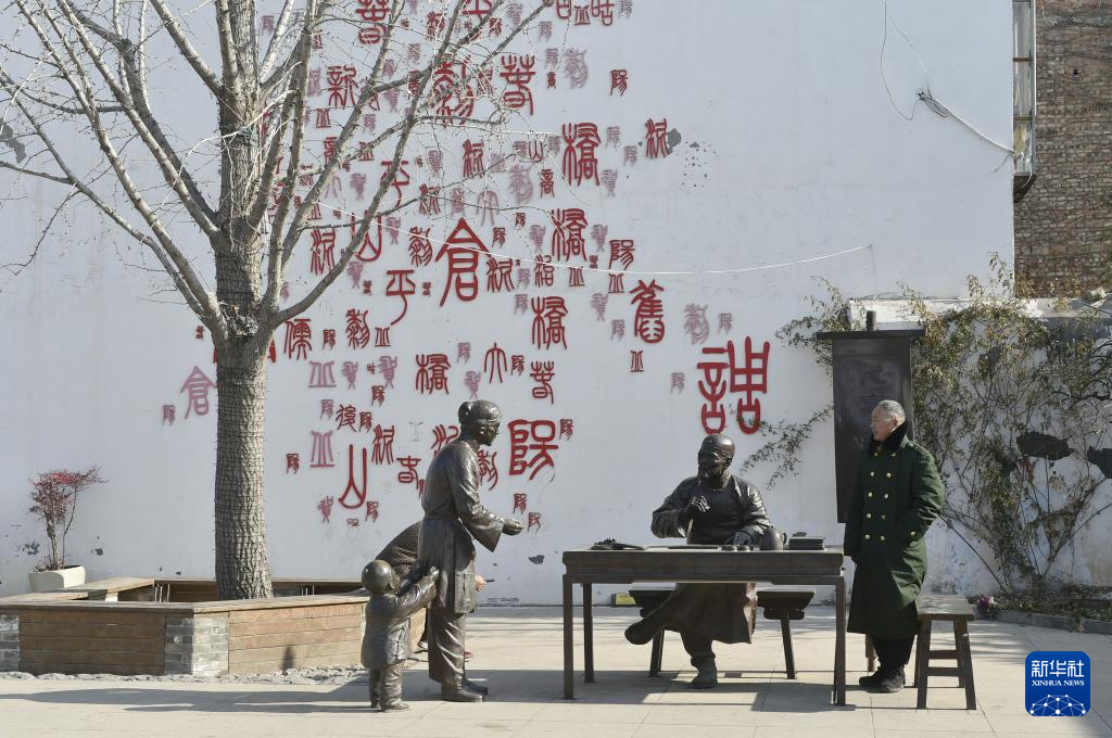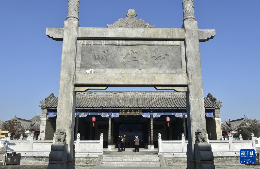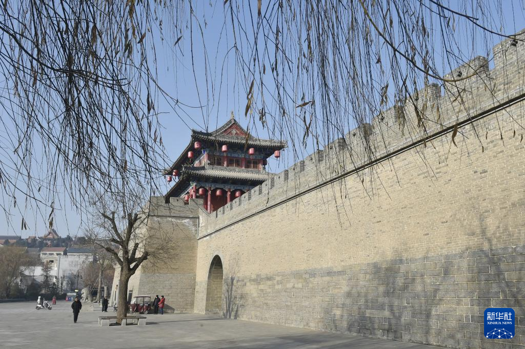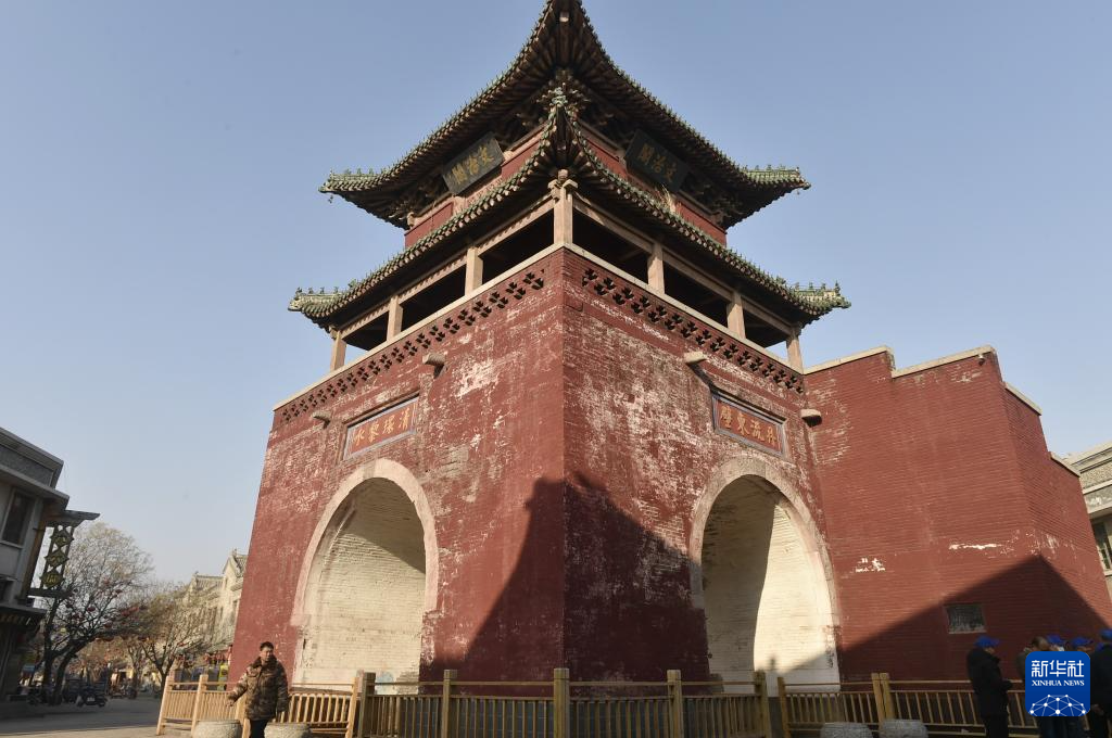 1月6日,游客在??h古城的土圓糧倉內游覽。