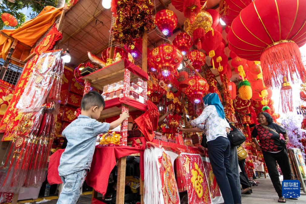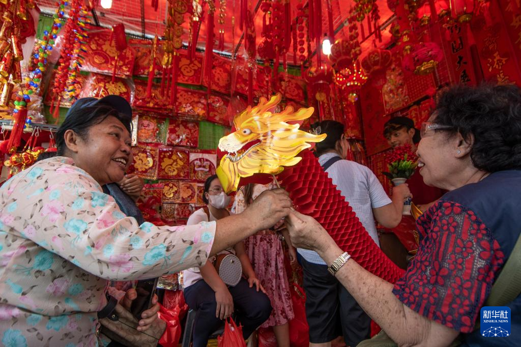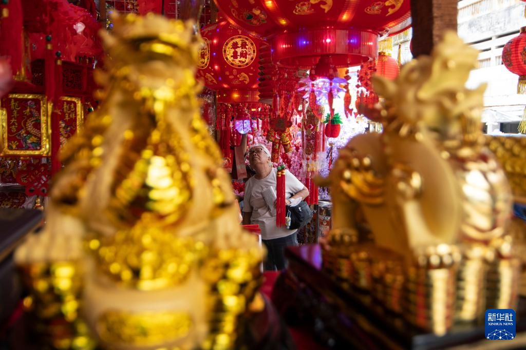 隨著龍年春節臨近,印尼雅加達民眾開始采購年貨迎接節日的到來。