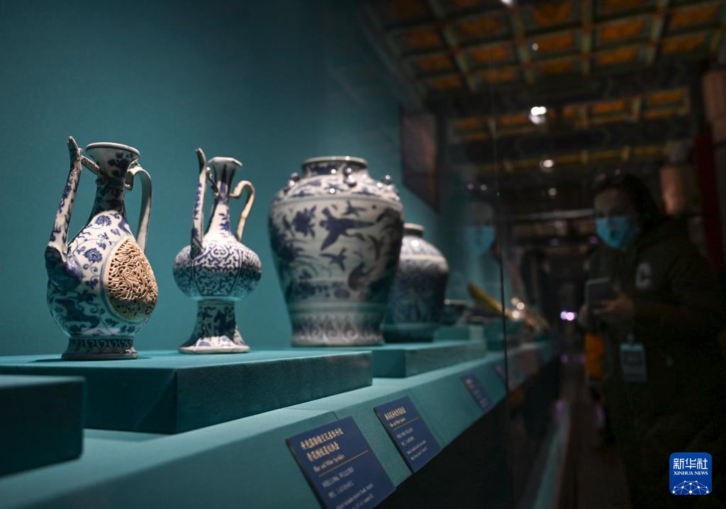 這是展出的伊朗阿德比爾神廟收藏的青花瓷(1月10日攝)。